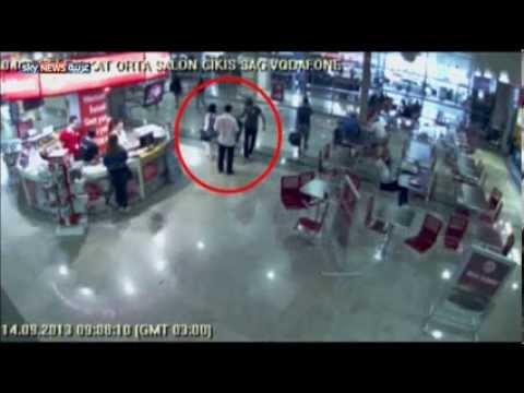 وما إن ترجلت من السيارة حتى شوهدت وهي تجري مكالمة هاتفية، ثم أظهر شريط الفيديو الزوجان الألمانيان في المطار، وهما يتجهان لمقابلة دينارا، التي سبقت المرأة الألمانية إلى حمامات المطار مع طفلها.
